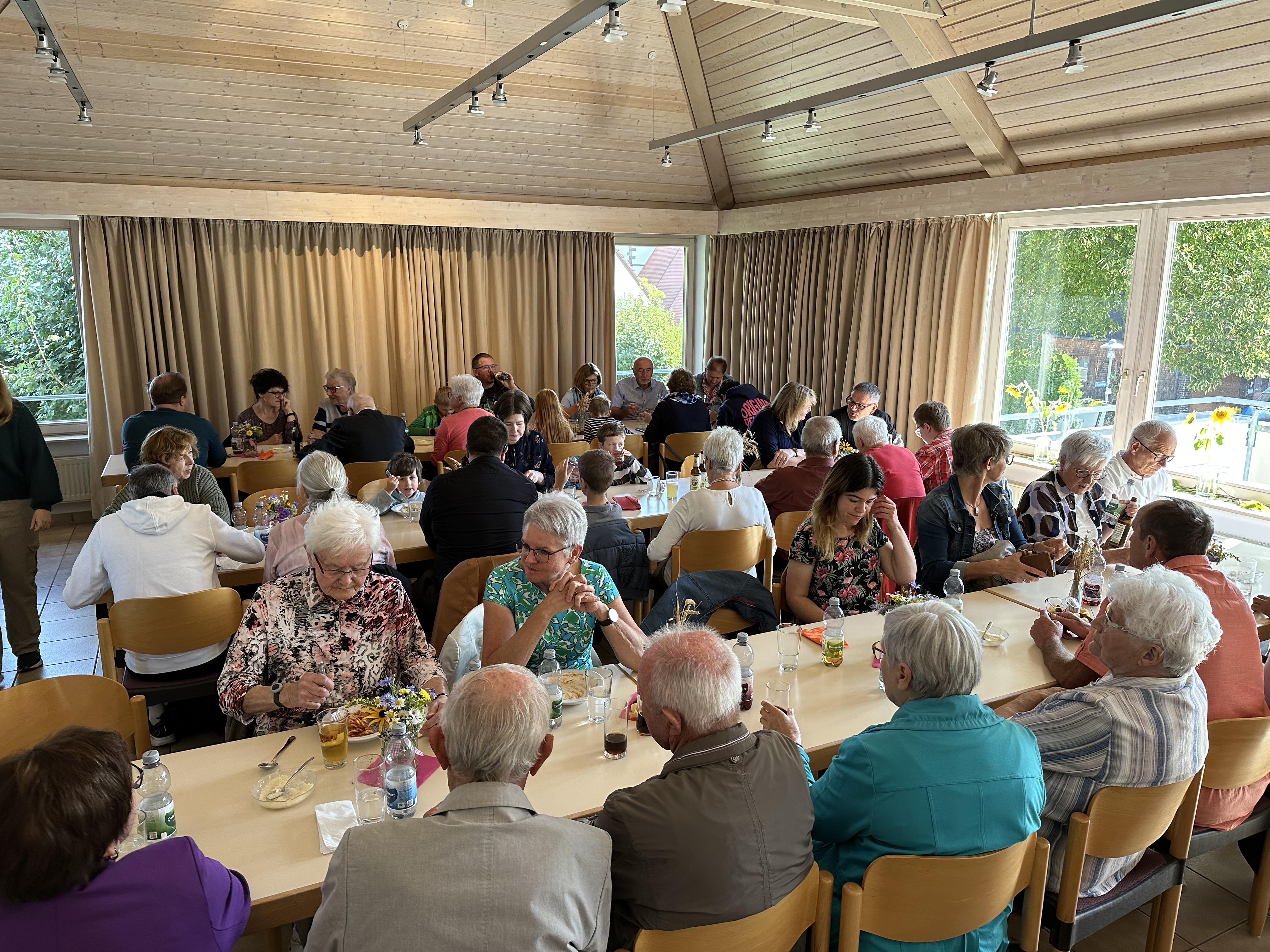 Im Erdgeschoss befindet sich ein Jugendraum, eine kleine Küche und Toiletten. Der große Gemeinschaftsraum liegt im 1. Stockwerk und ist vom Hof des Gemeindehauses ebenerdig zu erreichen. Eine gut ausgestattete Küche ermöglicht die Versorgung von etwa 80 Personen. Der große Raum kann durch eine Schiebetür in zwei kleinere Bereiche abgetrennt werden. Diese können auch einzeln gemietet werden. Im 2. Stockwerk liegt der großzügige Jugendraum mit Sofas, einem Tischkicker und ebenfalls einer kleinen Küche mit Bar. In diesem Raum haben etwa 25 Personen Platz. Auch dieser Raum kann extra gemietet werden.